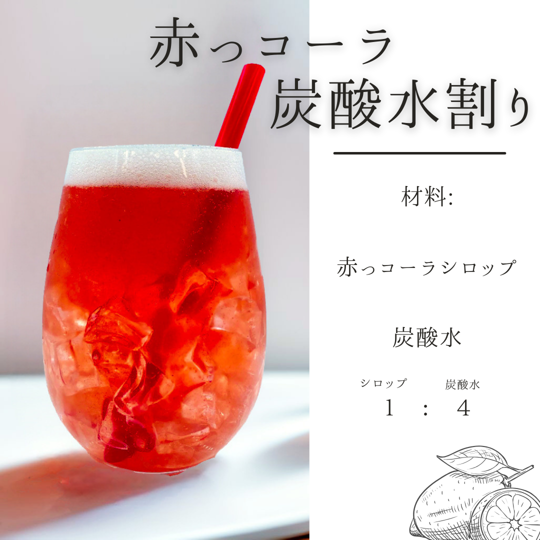 「赤っコーラ」は、日々のちょっとしたリフレッシュや、自分へのご褒美タイムにぴったり。炭酸水で割って爽快な一杯を楽しむほか、お湯で割ってホットドリンクとしてもおすすめです。
