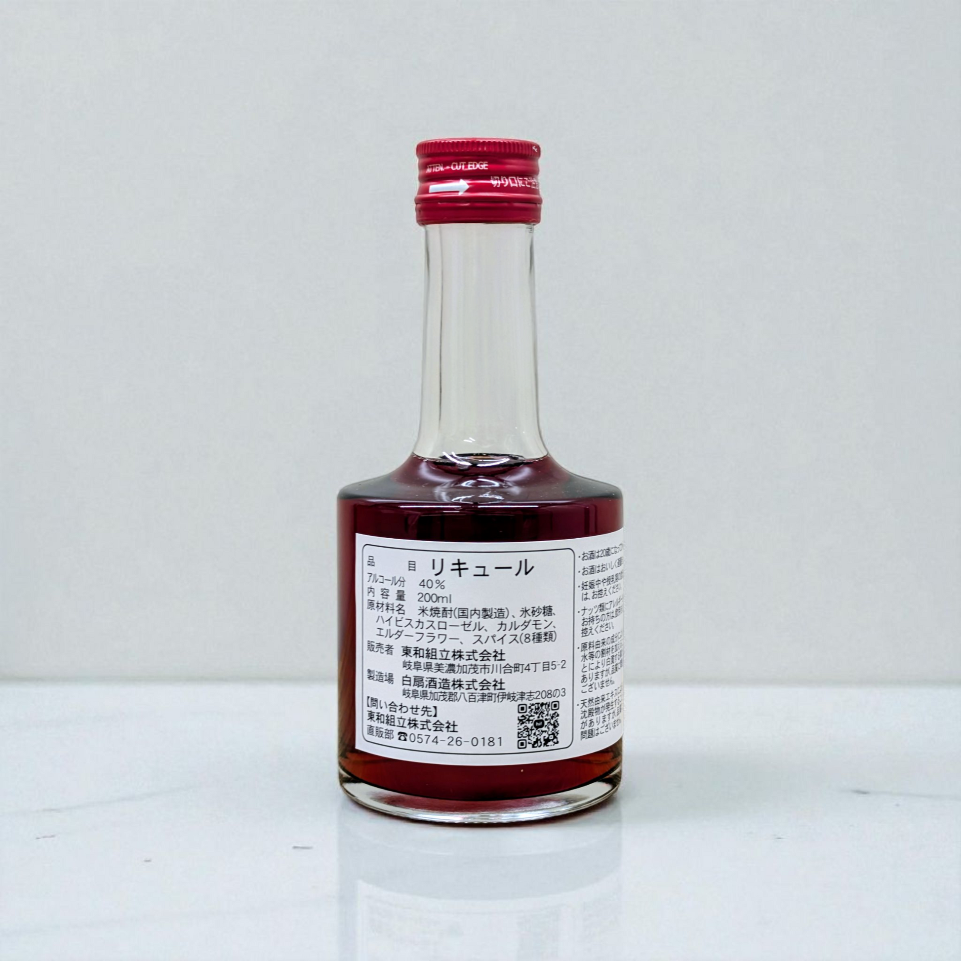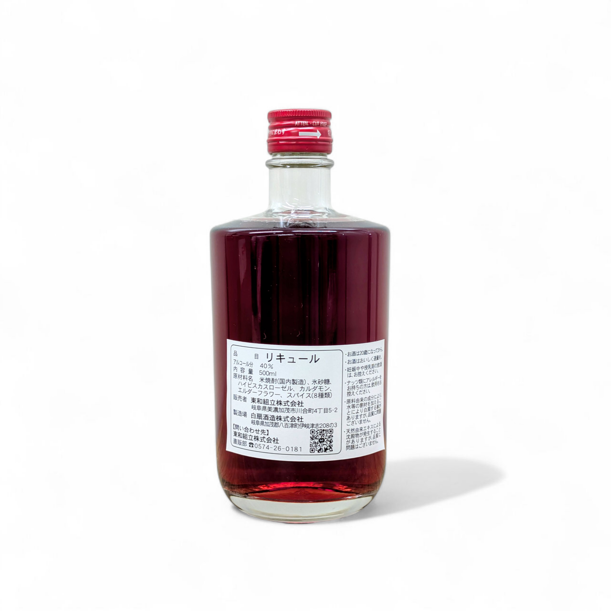 ハイビスカス・ローゼル由来の透き通るルビー色が目を惹き、ほんのりとした酸味と、11種類のスパイスとハーブが織りなす華やかな香りと味わい。岐阜県・白扇酒造の伝統焼酎製法と融合し、無添加で仕上げた上質なクラフトリキュールです。